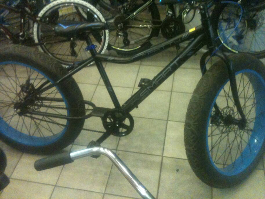 Увидел в магазине вот такое изделие названное «вездеходом» «smart». ,Продавец сказал, что на этом, якобы можно ездить по песку и болотам. ИМХО в качестве велосипеда это изделие тяжеловато, да и дизайн уродский. Обычно такие тяжёлые рамы делают для мопедов. Интересно, можно ли на эту раму поставить вилку с амортизатором?