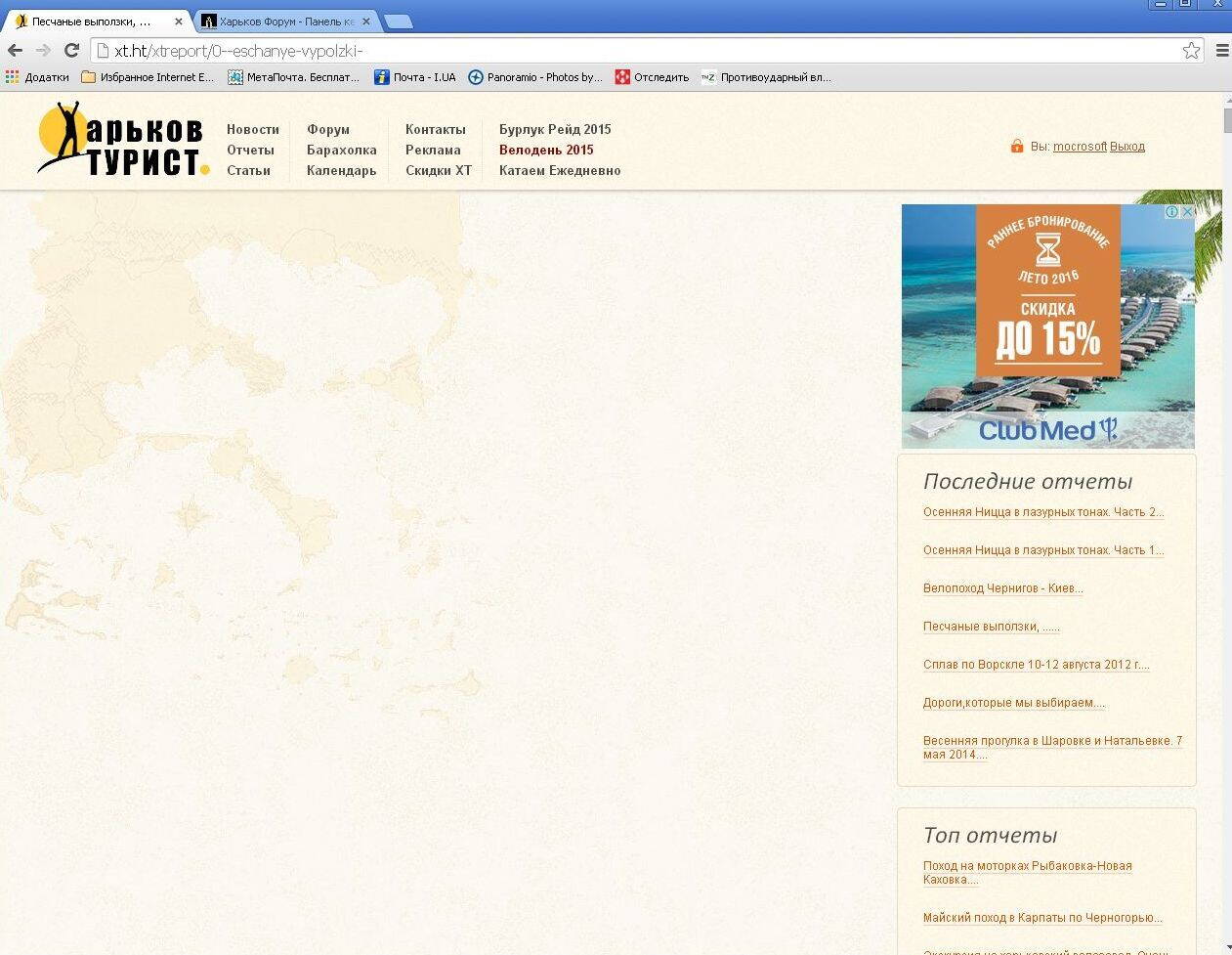 В браузере IE отчет отображается, но теперь панель с его текстом перекрывает частично панели навигации и баннеры рекламы: