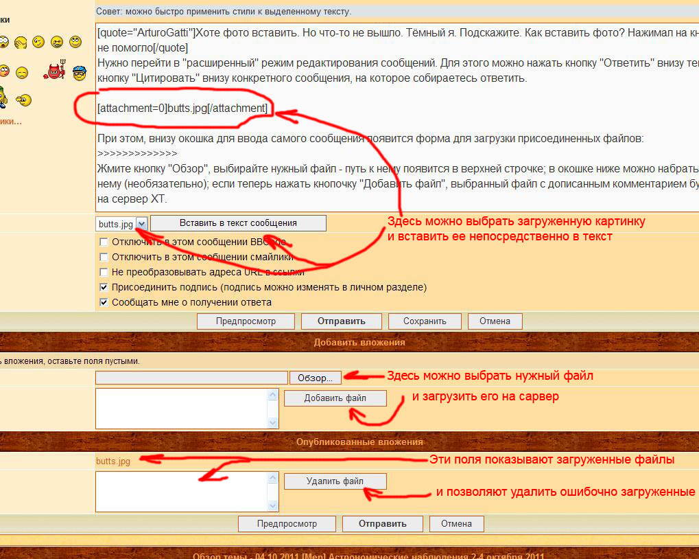 Я заливаю флтки на какой-нибудь хостинг картинок, потом копирую ссылку и тут в сообщении нажимаю img если нет ещё в адресе и вставляю сюда. [img]http://www....[img]