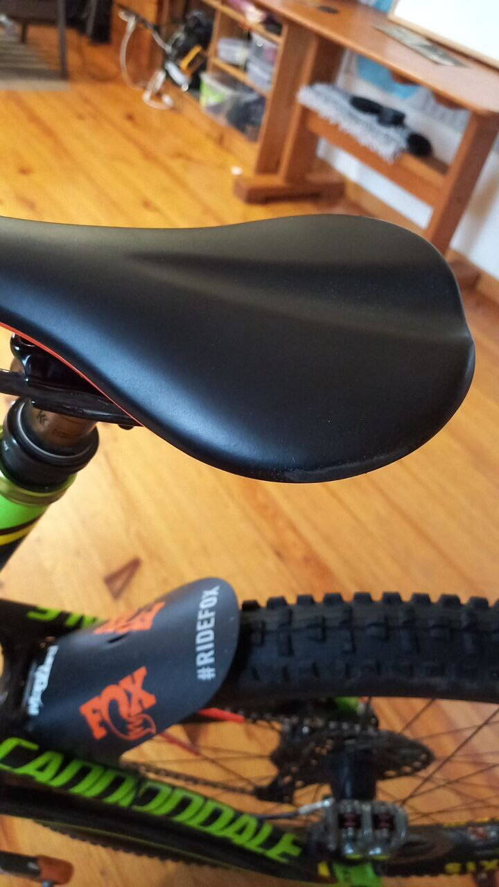 Сидiння: Fabric Scoop на карбонових рейках, пiдсидiльний пневмотичний штирь Fox Transfer kashima 150mm хода, рубашка й тросiк Jagwire