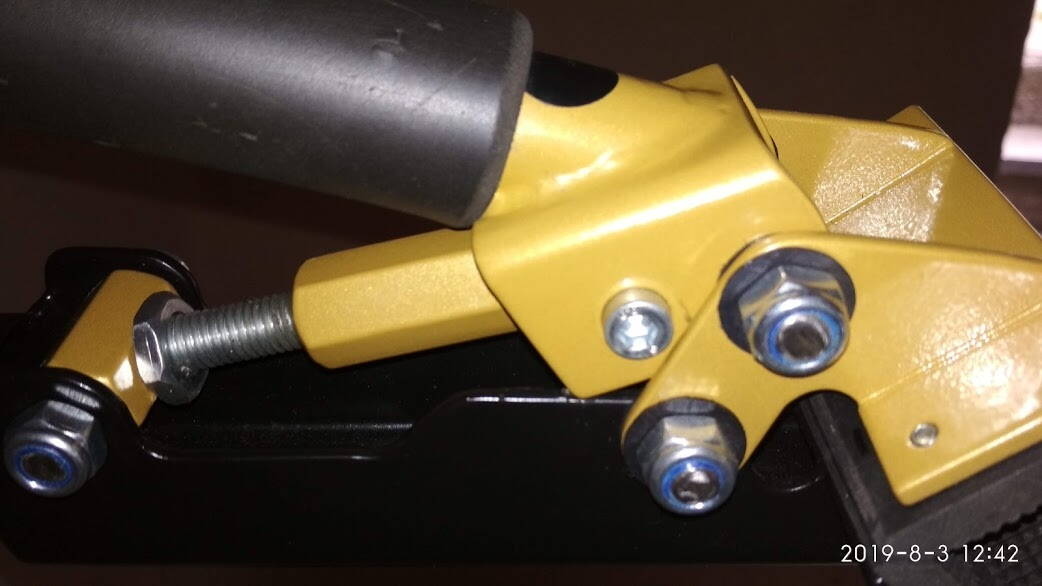 — Удобный рычаг зажима, с простой и чёткой регулировкой рассчитан на диаметры от 25мм до 48 мм (крутящаяся пальцами деталь выточена из пищевой нержавейки). На фото я зажал карбоновую раму — настолько точно вы можете настроить диаметр и усилие!