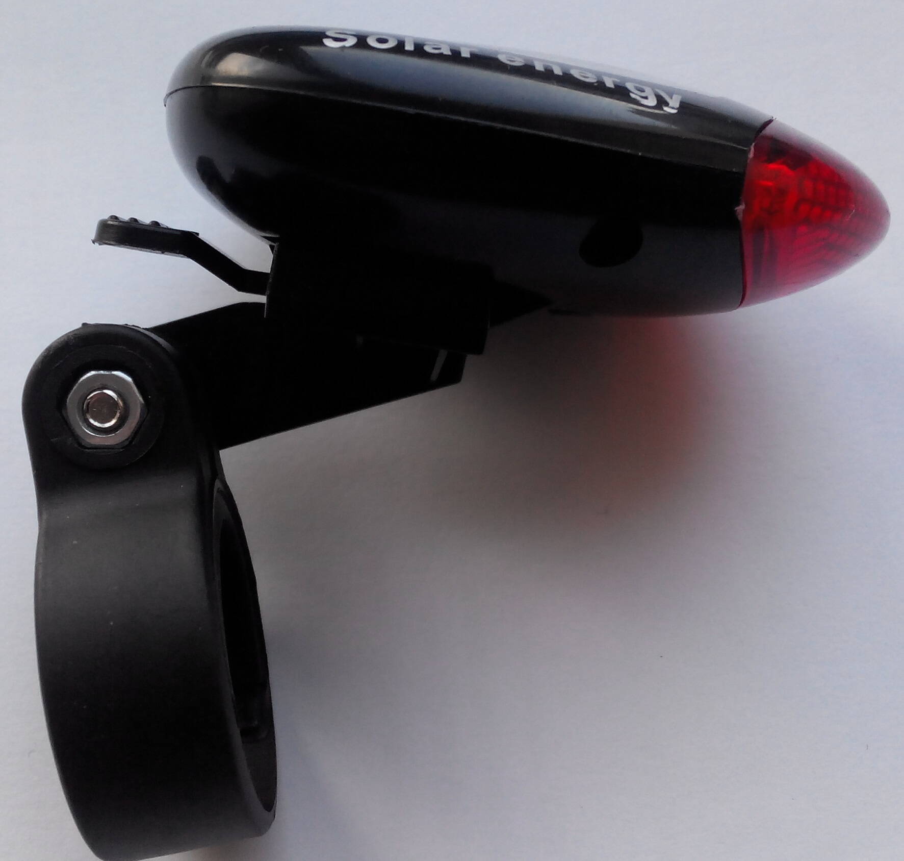 2.Велосипедная задняя мигалка (габарит) с подзарядкой от солнечной батареи. Заряжается всего за 2 часа, заряда батареи хватает на 4 часа постоянного света и 8 часов в режиме Flash (устройство питается от NiMH аккумуляторов 2.4v 80 mAh аккумуляторов)