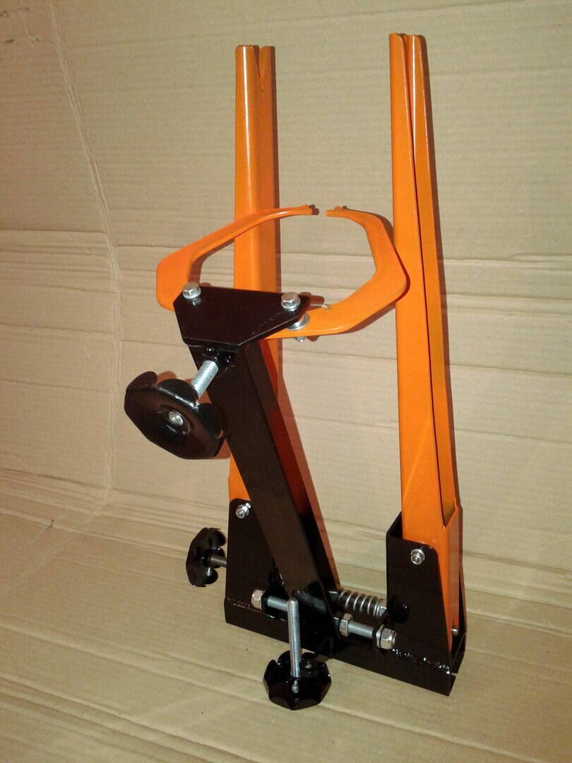 Станок для центровки колес. Обслуживаемый размер втулок до 200мм, диаметр колес от 16 до 29" +, можно устанавливать колесо не снимая покрышки, так же очень актуально для колес фэтбайков, калиперы расходятся очень широко, что позволяет установить покрышку до 4", соответственно так же и любую ширину обода. конструкция очень жесткая т.к станок выполнен из стали 3мм + широкий профиль деталей. люфты отсутствуют, регулировка плавная, что позволяет добиться хорошей точности. к столу станок можно прикрепить с помощью 2-х шурупов (в основании для них есть специальные места)