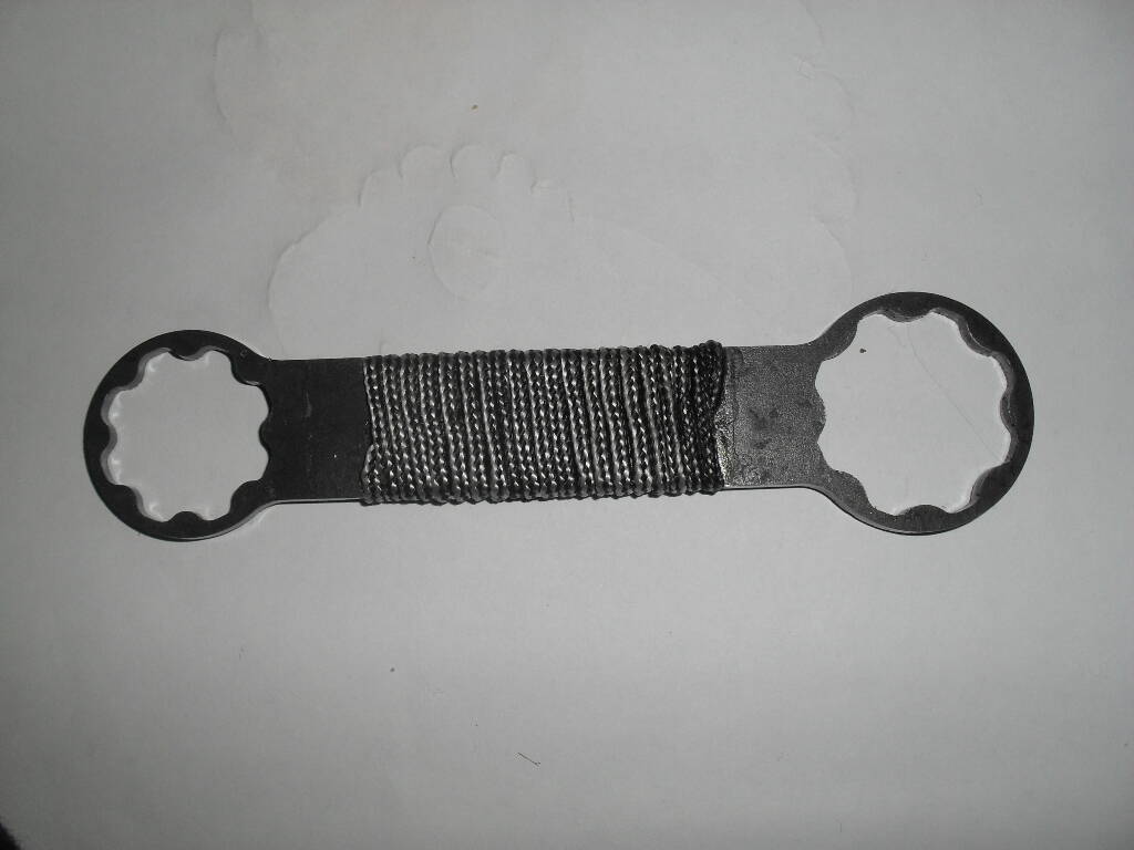 5. Ключ для кареток, стандарта BSA30 и ITA30. 12 пазов, толщина стали 3мм. Внешний диаметр 52мм. Размеры: 230х8х3мм
