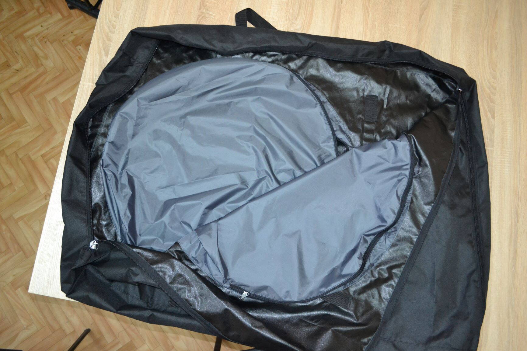 - широкі лямки, прошиті по всьому периметру чохла, які забезпечують зручність перенесення велосипеда при транспортуванні;