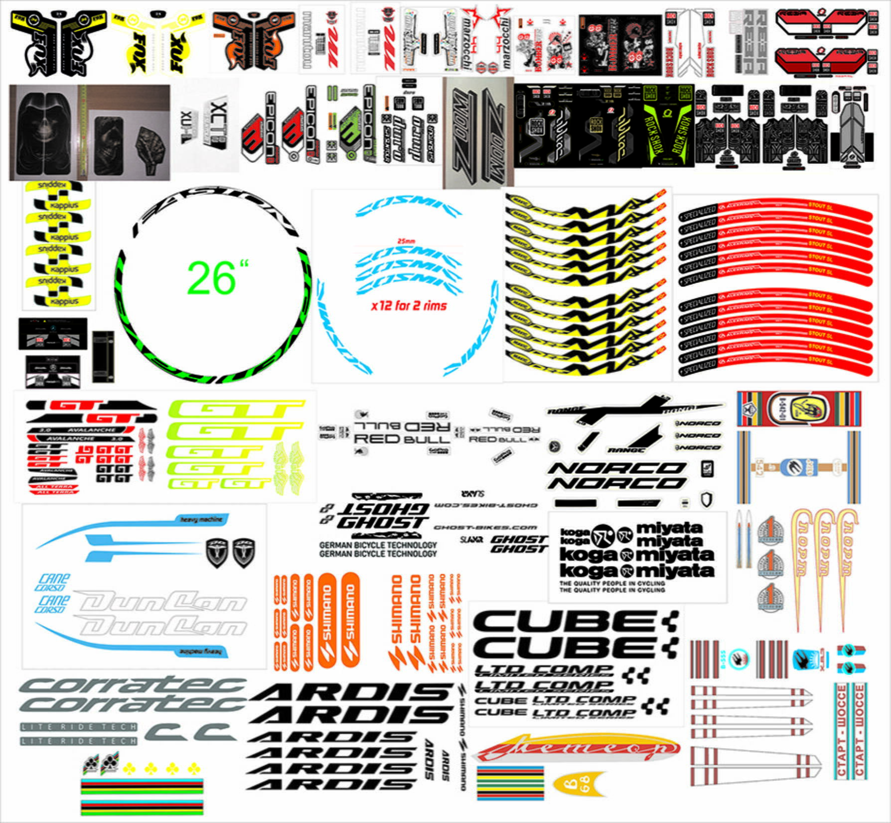 Наклейки, стікери, декалі для велосипедних амортизаторів, вилок, ободів, рам.