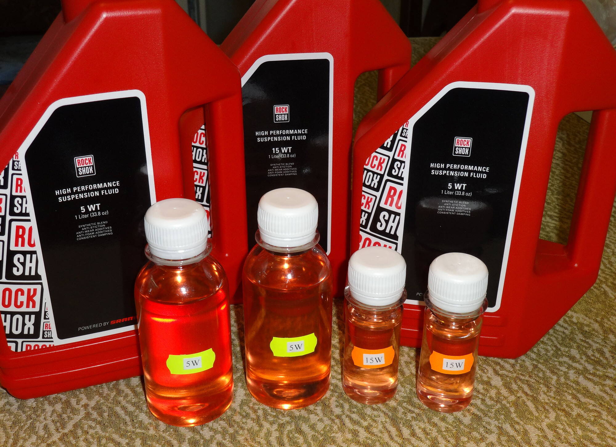 5. Масло вилочное ROCKSHOX FORK OIL (2,5W, 3W, 5W, 15W, 0W-30) - это линейка масел компании SRAM на синтетической основе для амортизационных вилок