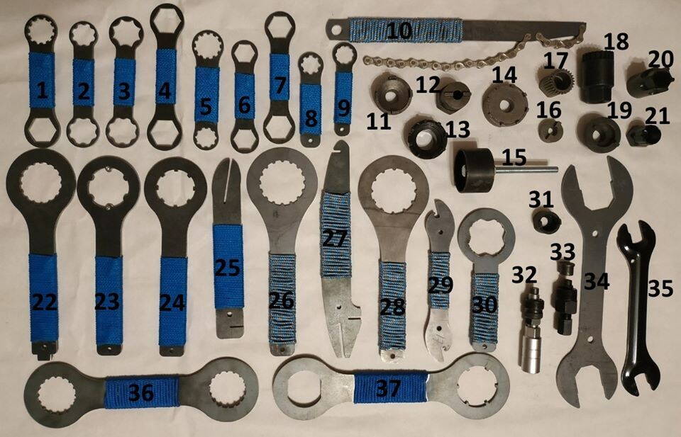 1) Ключ с хлыстом (самоделкин) для кассеты, ничего лишнего, но свою функцию выполняет на 100%:), цена: 80 грн (не такой как на картинке) 2) Сьемник кассеты Shimano, Sram и тд (подходит к трещеткам и роторам с креплением center lock) под ключ 24,очень крепкий, цена 35 грн 3) Ключ для разборки барабана "ореха" задней втулки, метал высокого качества, совместимость и работоспособность 100% , под накидной ключ 30, цена 100 грн 4) №83 Ключ конусный, очень крепкий 1 сторона - 13-15mm 2 сторона - 14-16mm цена: 38 грн, цена пара: 75 грн Удобная вещь при ТО втулок колес 5) Съемник для трещеток (кассет) ХВЗ, под стандарт два отверстия, цена: 65 грн 6) Съемник трещеток Suntour под стандарт 4 отверстия, цена: 60 грн 7) Ключ тонки-легкий 14-15 в дорогу для педалей.., цена 30 грн 8) Съёмник фривила диаметром 1-3/8 дюйма Захват под ключ 24мм, цена 70 грн 9) Сьемник шатунов под квадрат Super B, с обратной стороны под болт на 14, цена 70 грн 10) Выжимка шатунов, под квадрат, вращающаяся упорная головка Тайвань, очень качественная, под ключ 15 и/или шестигранный на 8 мм цена 55 грн 11) Ключ педальный 3 в 1 модель "YC-161", ключ торцевой 14/15 + рожковый на 15, удобная прорезиненная ручка и рожковой ключ закрыт что б не поцарапать шатун, цена: 100 грн 12) Ключ сьемник каретки Shimano Hollowtech II с ключём под гайку на шатуне, материал очень толстая сталь:) цена: 155 грн 13) Щетка для чистки цепи и звезд кассеты Bike Hand , цена: 85 грн 14) Инструмент для снятия и установки подшипников интегрированных кареток Shimano Hollowtech II и подобных конструкцией С помощью его легко замените подшипники, скину видео пример работы с ним.. Цена 230 грн 15) Сьемник каретки стандарт для Shimano и ISIS 20 шлицов, материал сталь, под ключ 24, цвет серебро, цена 95 грн 16) Сьемник каретки стандарт ISIS 20 шлицов, цена 28 грн 17) Ключ сеьмник каретки под 6 зубов, цена: 60грн 18) ) Съемник на 8 зубцов для снятия/установки картриджей каретки систем ISIS drive и Truvativ, цена: 65 грн 19) Семник трещеток для BMХ модель Super-B , 4 шлица, цена: 85 грн 20)Удобный Y-образный ключ SuperB с тремя головками (выжимка шатунов под квадрат, шестигранный ключ на 8, головка на 14) высокое качество, цена 90 грн 21) Выжимка шатунов типа Super B для шлицевых систем типа ISIS, Octalink. Под рожковый ключ на 15 и/или шестигранный на 8 мм, калёная сталь, цена: 65 грн 22) Ключ семейный, 10 размеров, цена: 17 грн 23) Универсальная смазка для цепи на основе минерального масла с добавлением присадок обеспечивает хорошую работу на длительное время. не вымывается во время дождя, не притягивает пыль. Ресурс после одной смазки около 200 км пробега. объем 100мл. Цена: 105 грн 24) Выжимка, подходит для любых разборных цепей велосипеда, удобная ручка, цена: 85 грн 25) Сьемник каретки под шесть шлицов Campagnolo и других производителей, цена 120 грн 26) Ключ для топкепов, верхних крышек вилок, точная работа на станке, надежный ключ. для вилок RST Двойной цена 95 грн 27) Ключ для топкепов, верхних крышек вилок, точная работа на станке, надежный ключ. для вилок Sr. sunter Двойной цена 95 грн 28) Ключ для топкепов, верхних крышек вилок, точная работа на станке, надежный ключ. для вилок Rock shox, Fox двойной цена 95 грн 29) Ключ для топкепов, верхних крышек вилок, точная работа на станке, надежный ключ. для вилок RST двойной цена 95 грн 30) Ключ для топкепов вилок младших моделей вилок SR suntour, М3010 и подобных пружино-эластомерных. Материал: метал 3мм. Лазерная резка. Рукоятка в мягкой оплетке. Цена: 95 грн 31) Ключ для педалей Shimano SPD M520 и подобных по конструкции. Материал: метал 