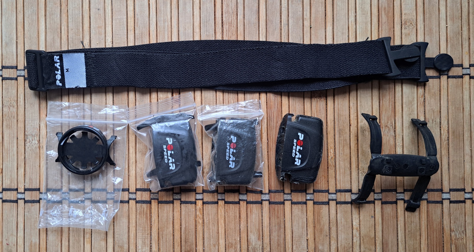 (Два разобранных датчика, один корпус, крепление для велокомпъютера, магнит)