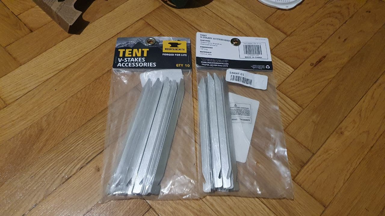 Ніколи більше не розчаруйтеся твердим грунтом або зігнутими колами Алюмінієві V-Stakes від Mountainsmith надзвичайно міцні та легкі.