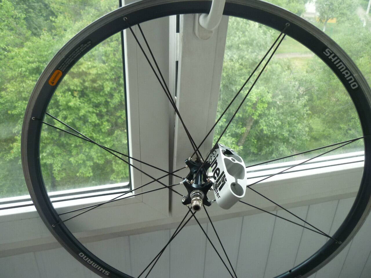 Заднее: втулка на шарах ноунейм, звезда 16, локринг, обод мач1, спицы х17.
