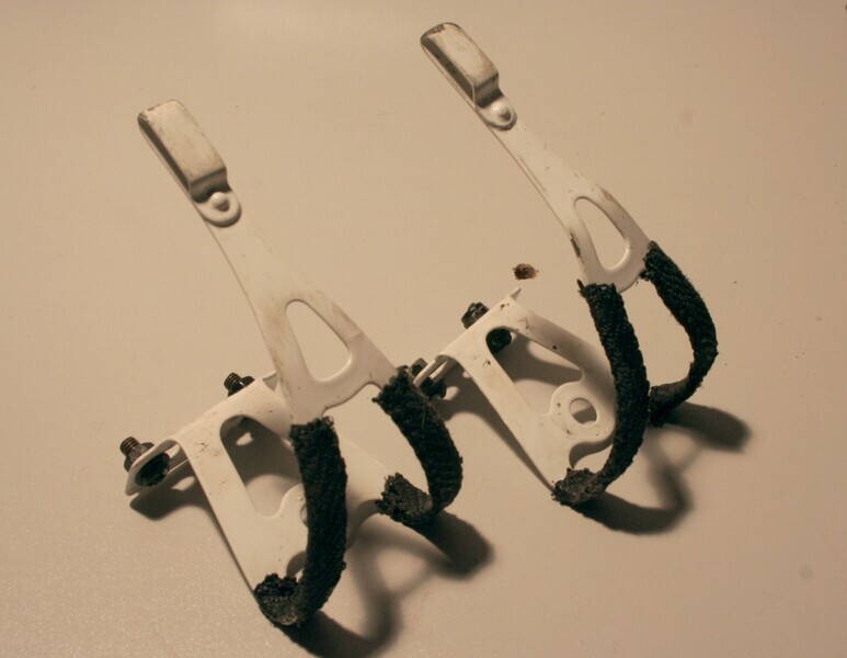 Туклипсы - размер М, крашены белым порошком, под один ремешок, есть потертости об асфальт (а у кого их нет) дам ремешки ХВЗ катанные в подарок 50 грн (с того же вела). проданы