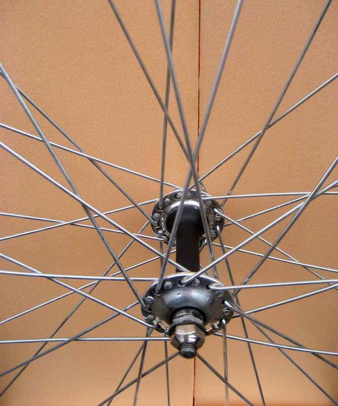 втулка на переднем колесе - шоссе (маде ин франция) на гайках с обеих сторон, на насыпных подшипника, крутиться очень хорошо.
