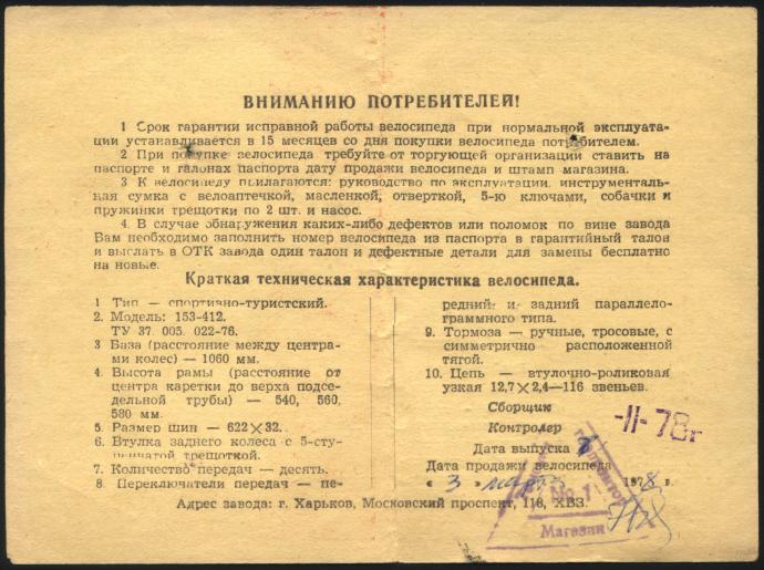 Велосипед у меня с 1980 года, ещё с велосекции остался.
