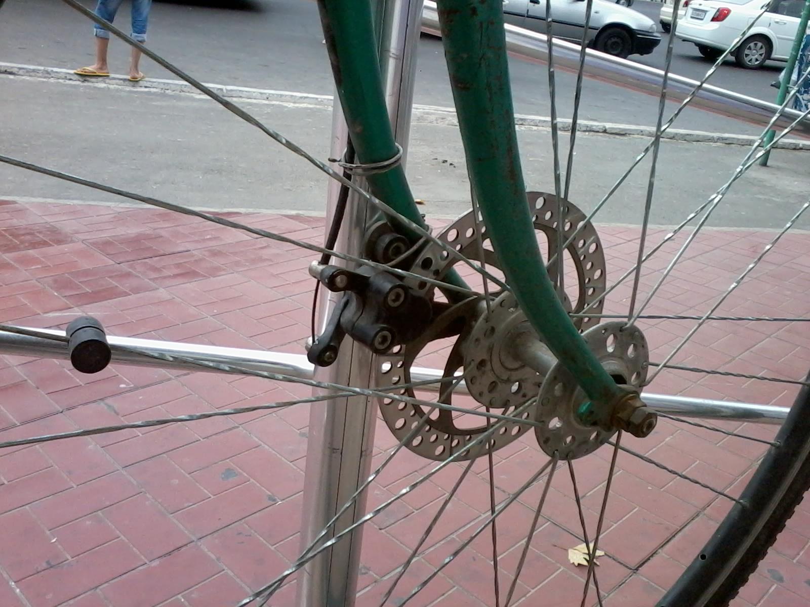 Строго говоря оно там так расположено что давит на перо... Перекос там невелик, сам ротор центрует тормоз. А вот как тормозные диски... сзади накручен вероятно на флипфлоповскую рекорд-втулку... а спереди? Хреносозидательство на отлично. Со смекалкой и сноровкой.