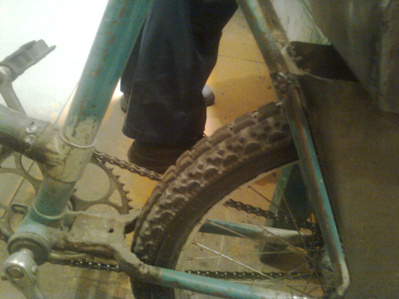 Есть еще третья поздняя Кама (90-е годы), так вот она превратилась в советский Фэтбайк, мопедовские покрышки, усилена рама, прицеп часто таскает. Но качество рам из 90-х никакое, на фото видно, что вся переварена. Но и нагрузки на неё бешеные, прицеп на мопедовских колесах с грузом 50- 100 кг (двигатель например), сам электрик под 100 кг, и сумка с инструментами на багажнике на кг 10-20.