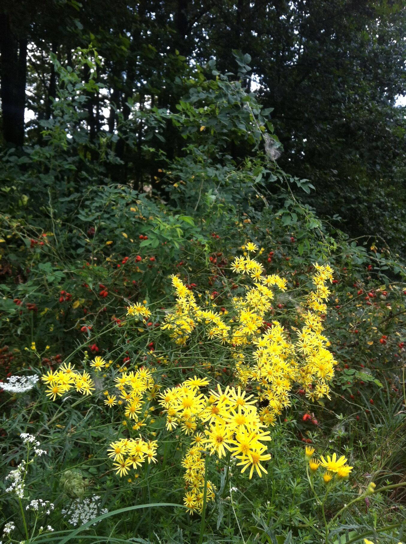 Свои 70 км мы проехали чудесным маршрутом, також с колючками и травой во весь рост! Видели половодье и наглого шмеля,который не реагировал на вспышку фота...