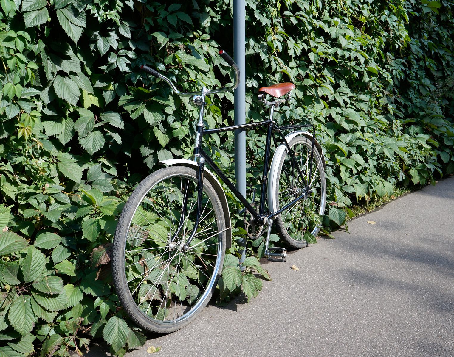 Хорошо отмытый и сохранившийся классический дорожный велосипед. Лействительно, концепция - рама "бриллиантовой огранки", скорее прямая посадка, кожаное седло, задняя втулка "Торпедо" - точно как минимум с начала 20 века.