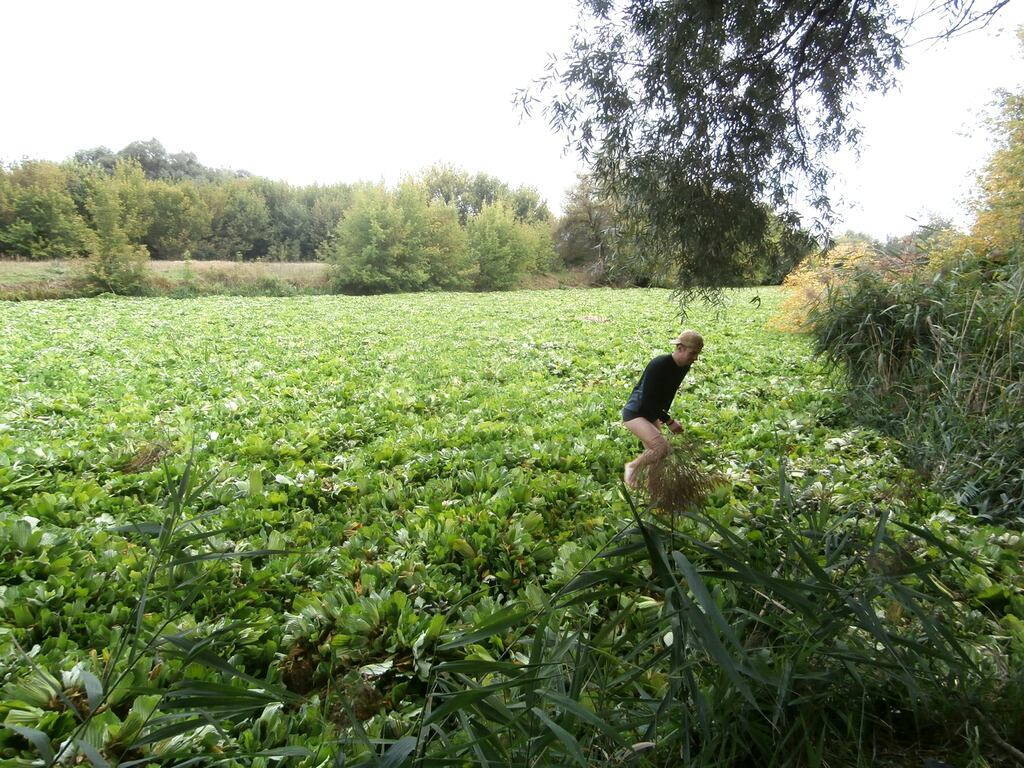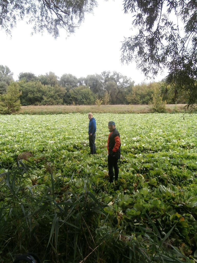 И вот за мостом подъехали к бережку поглазеть на "пистьевые" заторы - это был полный пистец! местами слой этой афрокапусты достигал более полуметра, что позволяло свободно, как зимой на катке, ходить по этому зеленому ковру, и даже можно перейти реку обутым и в одежде не замочив ножки....