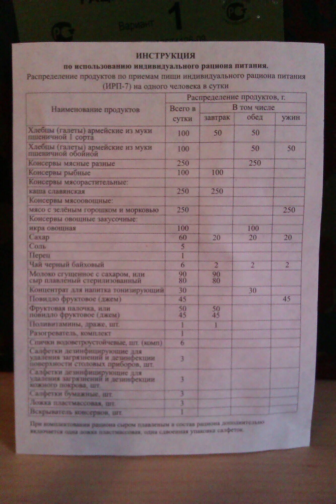 2. ИРП 7 - 1 шт. скомплектован 10.07.2011г. срок кодности консерв 3 года
