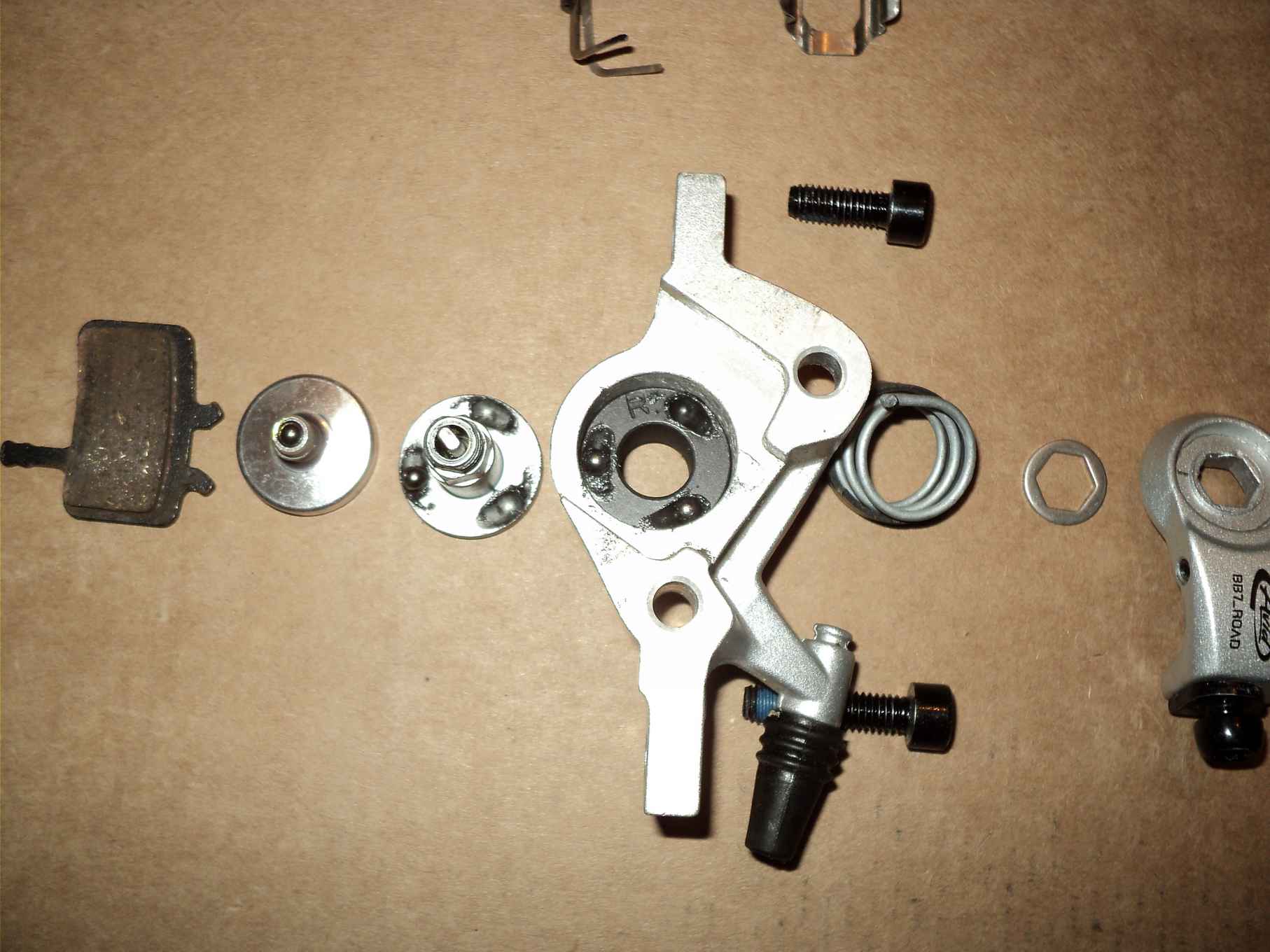В чем именно отличие калиперов BB7road от BB7 кроме как меньшем повороте рычага BB7road? Предлагаю сравнить разобранные BB7road и BB7. Фото второго нет. Вот разобранный калипер BB7road: