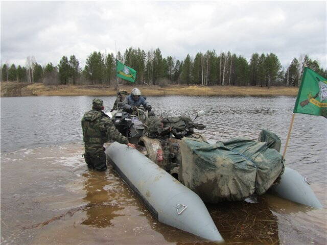 Как ты предлагаешь ее переплывать? Мот и квадр сейчас вряд ли своим ходом проедет, воды много.