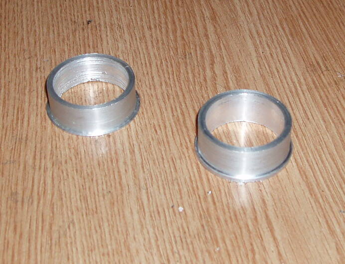 На всю ширину геморно точить и запрессовывать. Тем более, там в глубине каретки чуть меньше диаметр (у краёв развёрнуто для точной посадки чашек). Я сделал диаметр, как у чашек, а на несколько мм дальше мои фиговины очень туго, но зашли.
