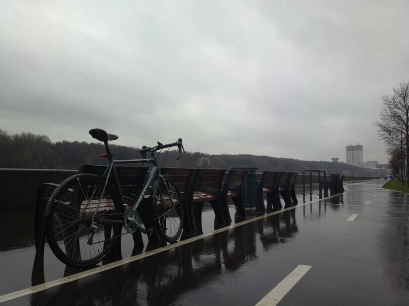 А теперь самое интересное - субъективные впечатления! Знаете, я должен Вам всем честно признаться - я очень давно не ездил на жигулях и совсем забыл как это оно. Ведь даже девятка у меня была примерной и надежной девчонкой. В общем, это чудо велопрома, слизанное с итальянцев (не, ну точно жигули!) тем не менее смогло меня удивить. Обычно я езжу на алюминиевой циклокроссовой раме (ну вот трудно найти что-то универсальное, а Surly LHT пока в мечтах) и она для меня жесткая. Стало мягче, только когда заменил вилку на хромолевую On-one и когда поставил дорожные шины 700х35 Panaracer (давление 4 атм). Так вот, СШ на 700х23мм (давление 7-8 атм) показал себя довольно комфортным. Да, я чувствовал каждый камешек на дороге, но, как ни странно, душу из меня никто не вытряхивал. Я был удивлен. Ну, если не считать неприятного удивления - со стороны трансмиссии шел какой-то хруст и подклинивание, наверное от педалей. Их после контактов и без туклипсов, крутить было очень неудобно. Тормозить было откровенно стремновато (после дисковой механики то конечно), но тормоза работали хорошо - каждый раз когда я тормозил, я делал "уффф", причем такое удивленное))) А что запомнилось отчетливо - это как я по улице пульнул по крайнему ряду - передача оказалась слишком высокой, но чуть поднажав, через какие-то мгновения я летел. Казалось, что я порхаю от трещины к трещинке, что воздух обрел плотность. Обычно когда катаешься, чувствуешь, как он плавно обтекает вокруг. А когда едешь быстро, то он плотно надвигается на тебя, обволакивая и принимая в свои объятия, на что в ответ ты пригибаешься еще ниже и продолжаешь крутить педали, обгоняя ветер. Впервые за долгое время я словил такие острые ощущения на велосипеде. У меня не хватило безумия разогнаться как следует - боялся переоценить тормоза, знал что это не дисковая механика, очень осторожничал. Но я почувствовал эту "реактивность" и отзывчивость. Казалось, что сидишь верхом на ракете и при этом тебя не трясет. Удивительно.