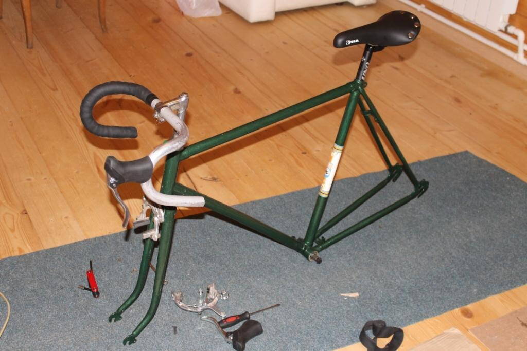 Понятно что данная рама, тем более паяная для фикса не очень подходит, но собрал для "попробовать" а вдруг понравится. Тест-драйв откладывается по причине несоответствия дорожного покрытия на улице шоссейной резине 622х23.