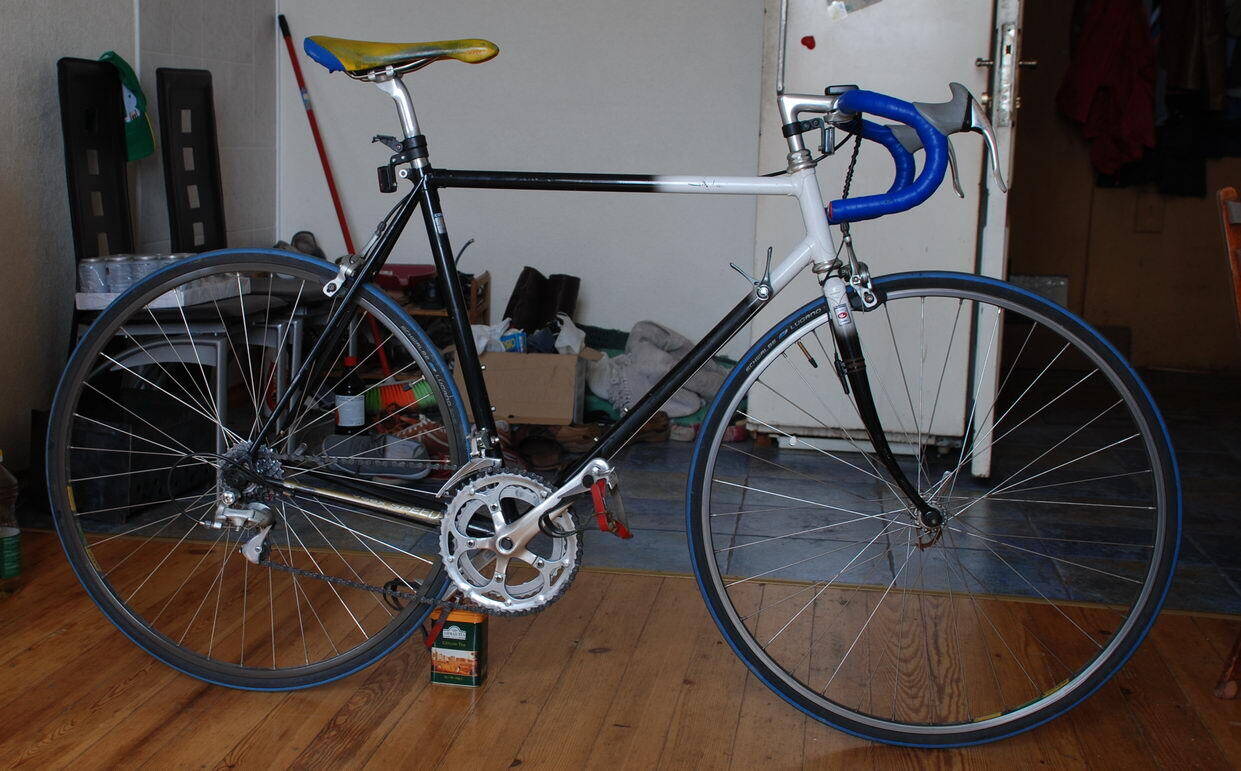 Присоединяюсь к коллегам насчёт туклипсов, защиты цепи и родного седла. Ну глагол бы современный поставить - он как-то надёжнее. Удобно Вам, когда руль так стоит? По идее, нижнюю часть (концы рогов) нужно выставить горизонтально, а тормозные ручки переставить, чтобы они остались там, где сейчас - они как раз на месте визуально.