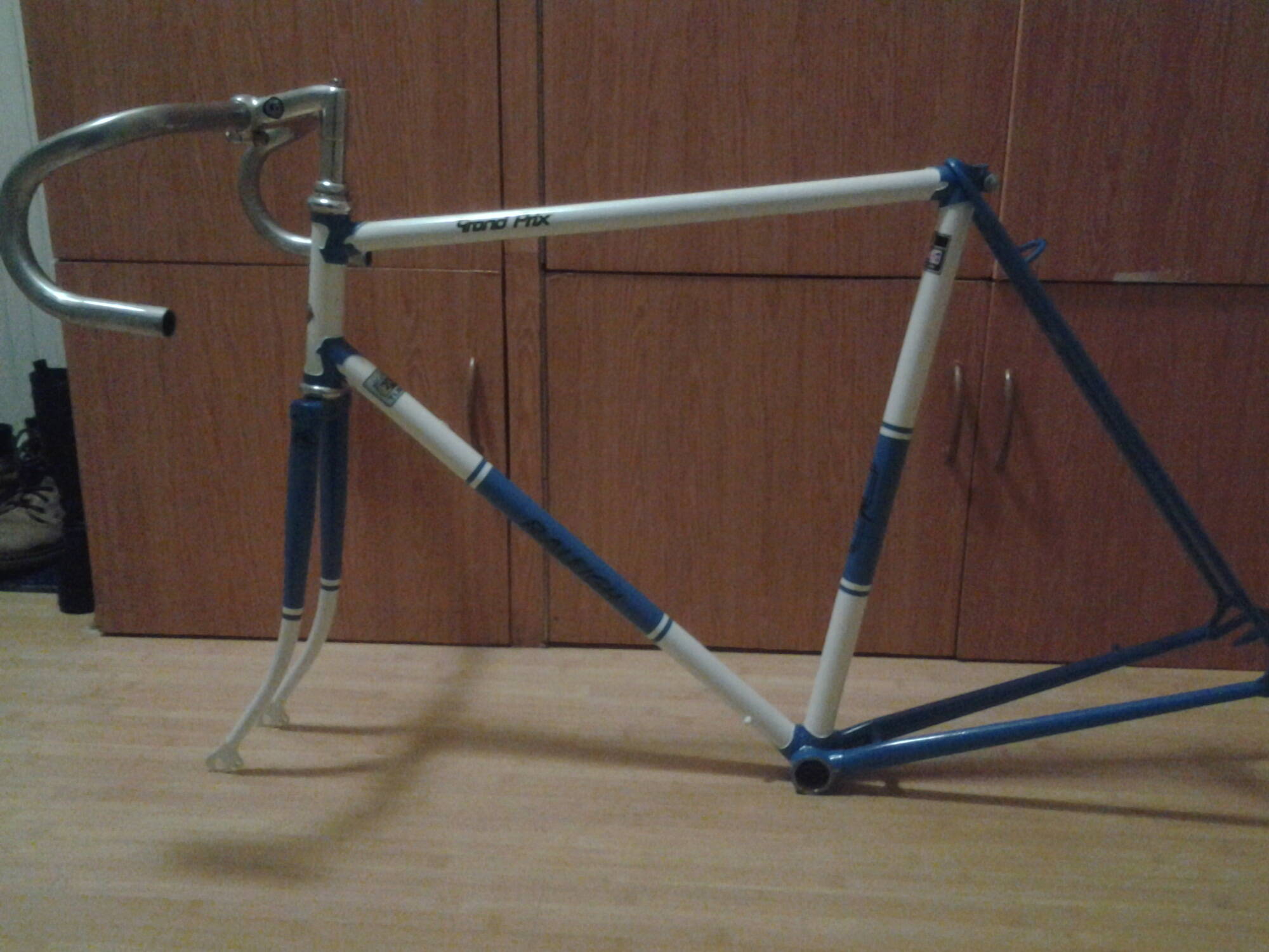 И вот я наконец-то перед новым годом мне досталась великолепная рама для посторойки дорожно-туристического вела. Натуральный англичанин, Raleigh Grand Prix, судя по остаткам навески периода 74-78 годов. Рама была уже ошкуреная. С рамой достался родной задний тормоз и каретка.