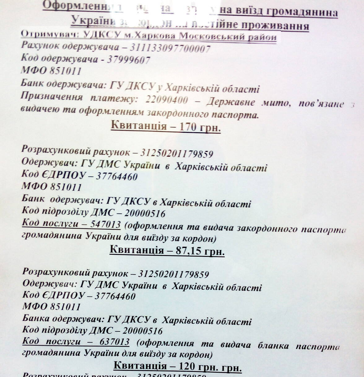 В 10 утра сегодня был в Московском. Передо мной уже было 20 человек. Некоторые с семи утра. В 10 и 11 кабинете можно взять бланки. У меня все было с собой, благодаря сайту. Заплатил в терминале 397грн. Выстоял очередь в 11-й кабинет. Отдал все документы, сфоткали, бумага и конверты не потребовались.