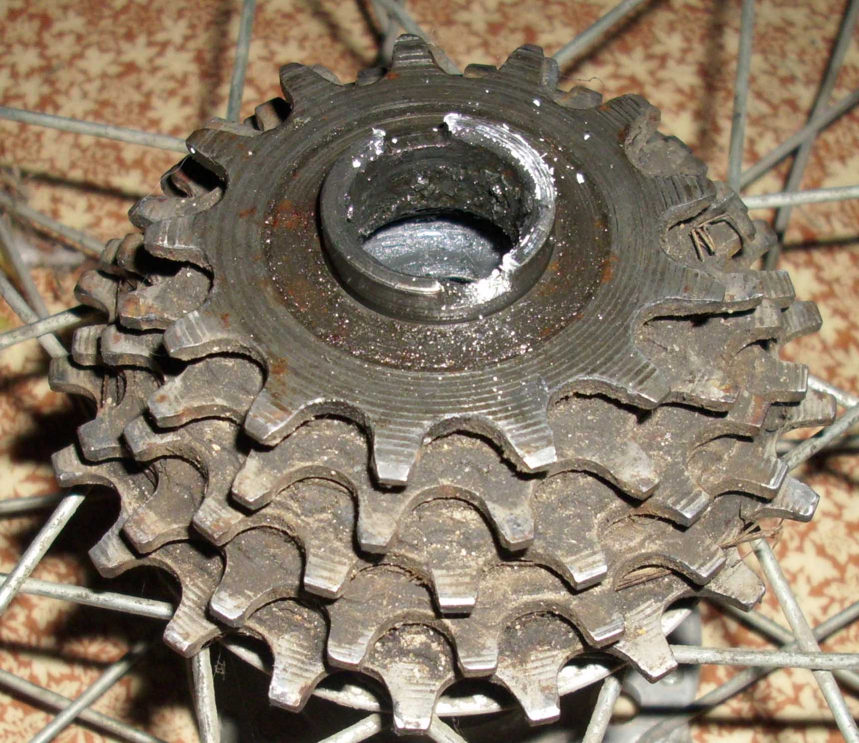 Всем привет. Достался мне СШ 1975 года. Особо крокодилить не хочу (раритет таки), но обода точно нужно менять под клинчерную покрышку. Втулки с высоким фланцем. Как снять трещетку? Она сильно отличается от тех, что я видел на более поздних СШ, и имеет место быть "плаванье" на оси всего блока звездочек.