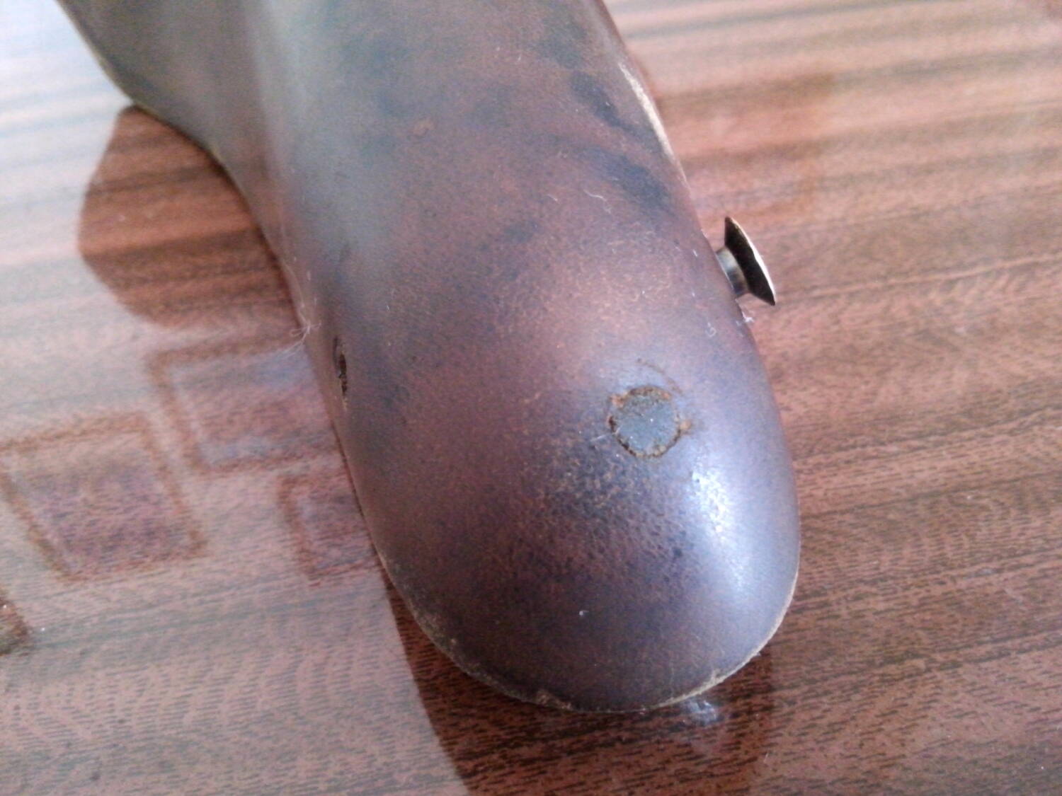не самый лучший пример: края отверстия и заглушки должны быть очень ровными. не стал переделывать, потому что заклепка практически закрыла этот стык . новое отверстие наложилось на старое миллиметра на 3 (чопик не выдержал - вылетел). вообще получил что хотел~ смещение центральной заклепки хоть и есть, но незначительное и в глаза не бросается.