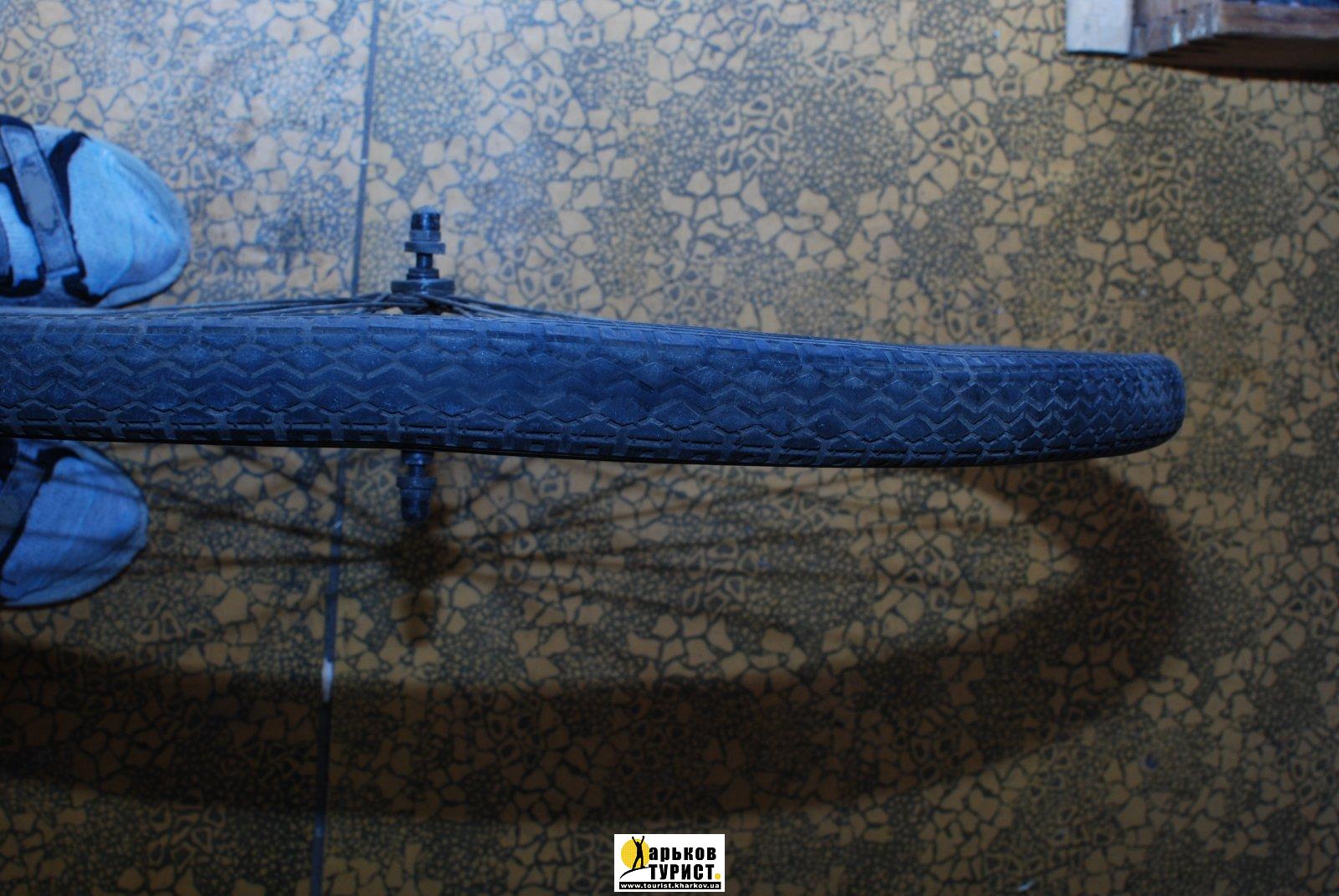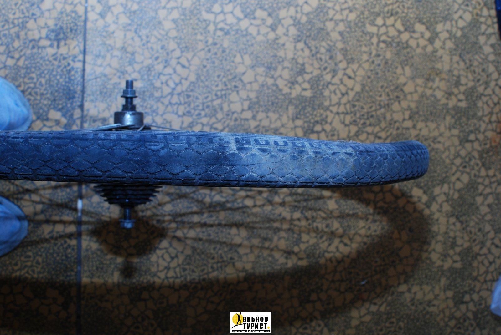 По колёсам. Советовал бы просто советские дорожные колёса (переднее привести в порядок, а в заднем втулку поменять на Торпедо, но.. Вам, можно сказать, повезло - передняя вилка кем-то дооборудована вибрейковым тормозом. Передний тормоз никогда лишним не бывает. Но по стальному ободу он работает неважно. Хрен бы с ним, если б хром на ободе был хорошим, а так он в покраску просится, а по краске - какой тормоз..