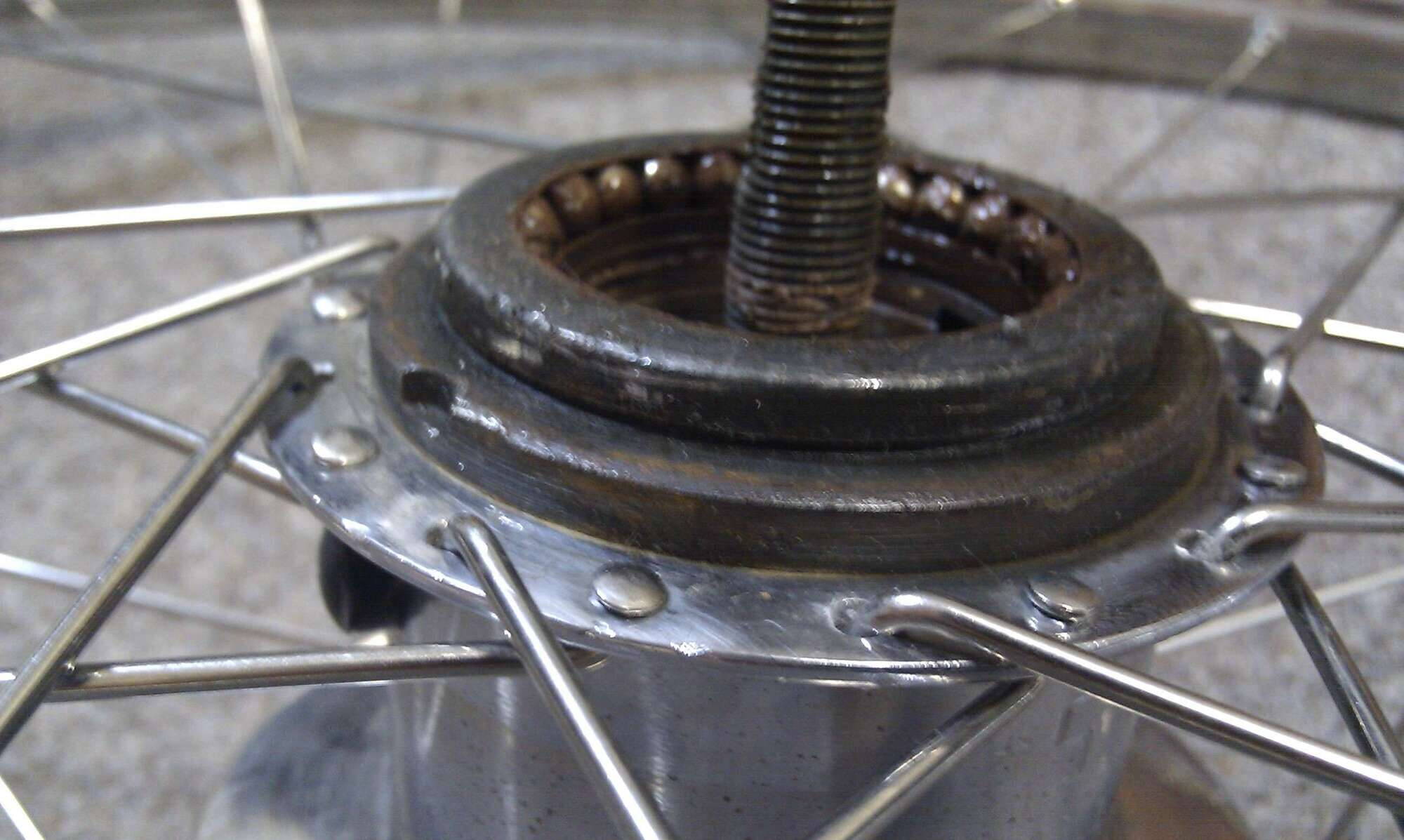 И ещё забавная вещь. На задней оси нет контргаек конусов. Либо они были протеряны предыдущими механиками, либо так и задумано, что контргайками являются зажимные гайки оси. В любом случае это странно, но с этим я ничего не сделаю так как резьба на оси совсем английская и гаек таких не найти.