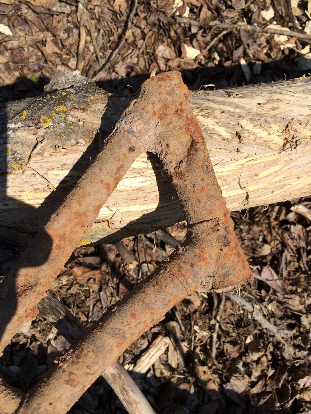 А еще местные охотники толи за металлоломом толи за эхом войны, выкопали на месте где была деревня, а в годы войны стояли немецкие войска вот такую раму, досталось ей изрядно, кстати на фото она лежит на деревьях сгрызенных бобрами.