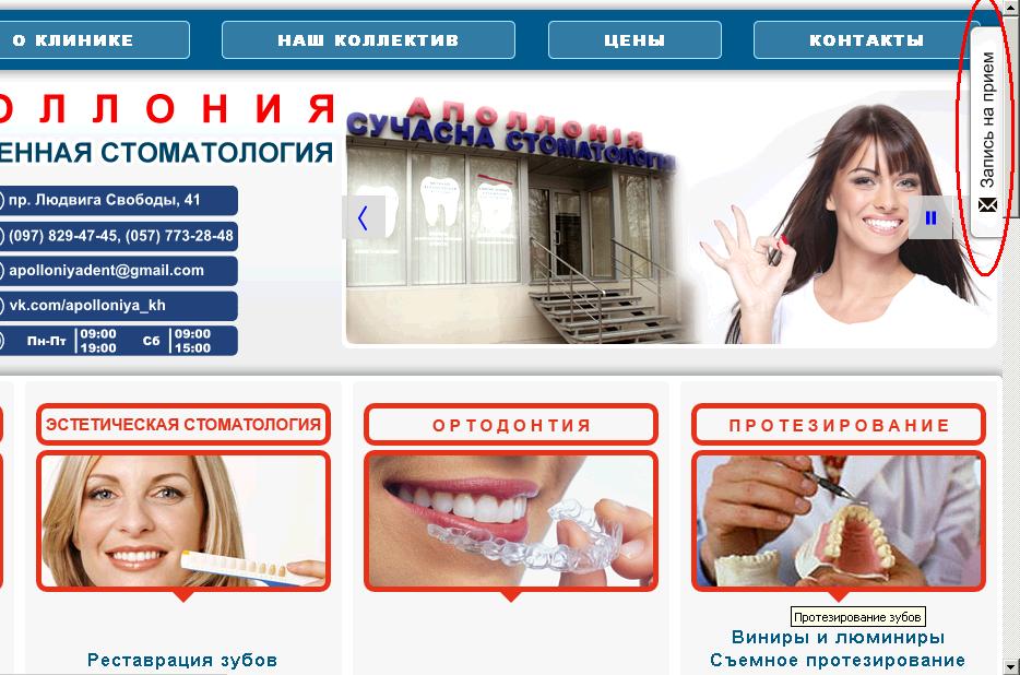 На нашем офсайте Вы можете найти прайс услуг, задать вопрос, записаться на прием не выходя из дома или находясь в пути (см. скриншот), оставив свои контактные данные. Главное - наличие интернета!