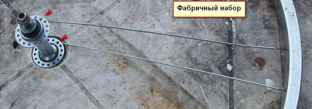 Наборы с иным количеством крестов попадаются реже и обычно не по делу, и здесь рассмотрены не будут. Кроме того, у сборщика колёс (базарного мастера, домашнего умельца или китайского рабочего) могло просто не оказаться спиц требуемой для данного набора длины, вот и набрал, как получилось, из имеющихся спиц.
