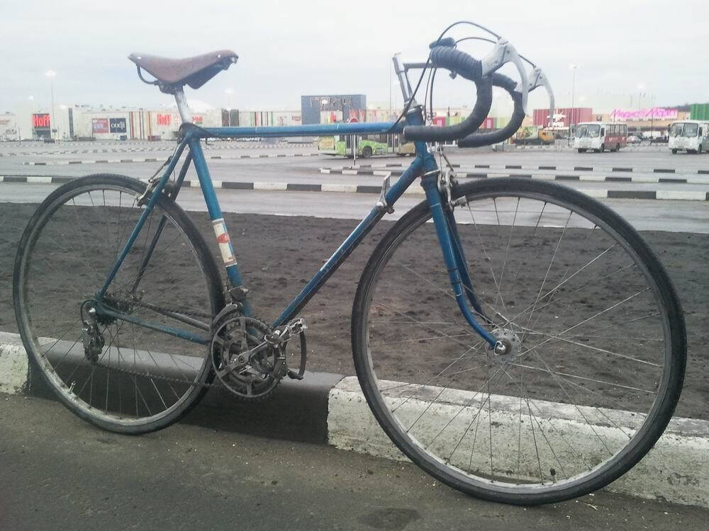 А ведь Спорт это редкий, как не странно! Да? С таким выносом и тормозами с боковой тягой и рычажками для их разжатия. Тросики то чёрные. то белые - почему? . Весь в эмблемах ЦКТБ Вело :) . И относительно нестрашно (местами красиво) выглядит - только пластмасски на звёздах и заднем колесе под звёздами его уродуют. Они родные, там и должны быть? Интересно, чем руль с завода обмотан был...