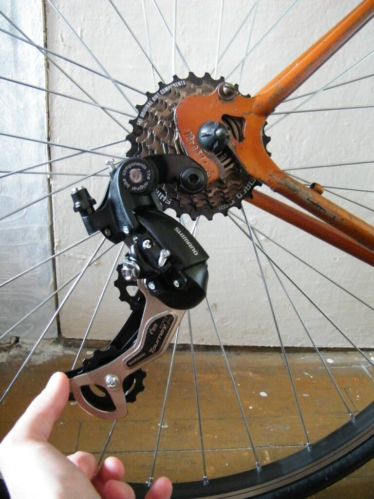 Переклюк тоже спорный, но на безрыбье и рак рыба, по крайней мере, длина лапки такая какая надо - работать будет, а со штатной манеткой подружится легко и непринужденно. А если чейнлайн выставим на середку вообще красота будет.