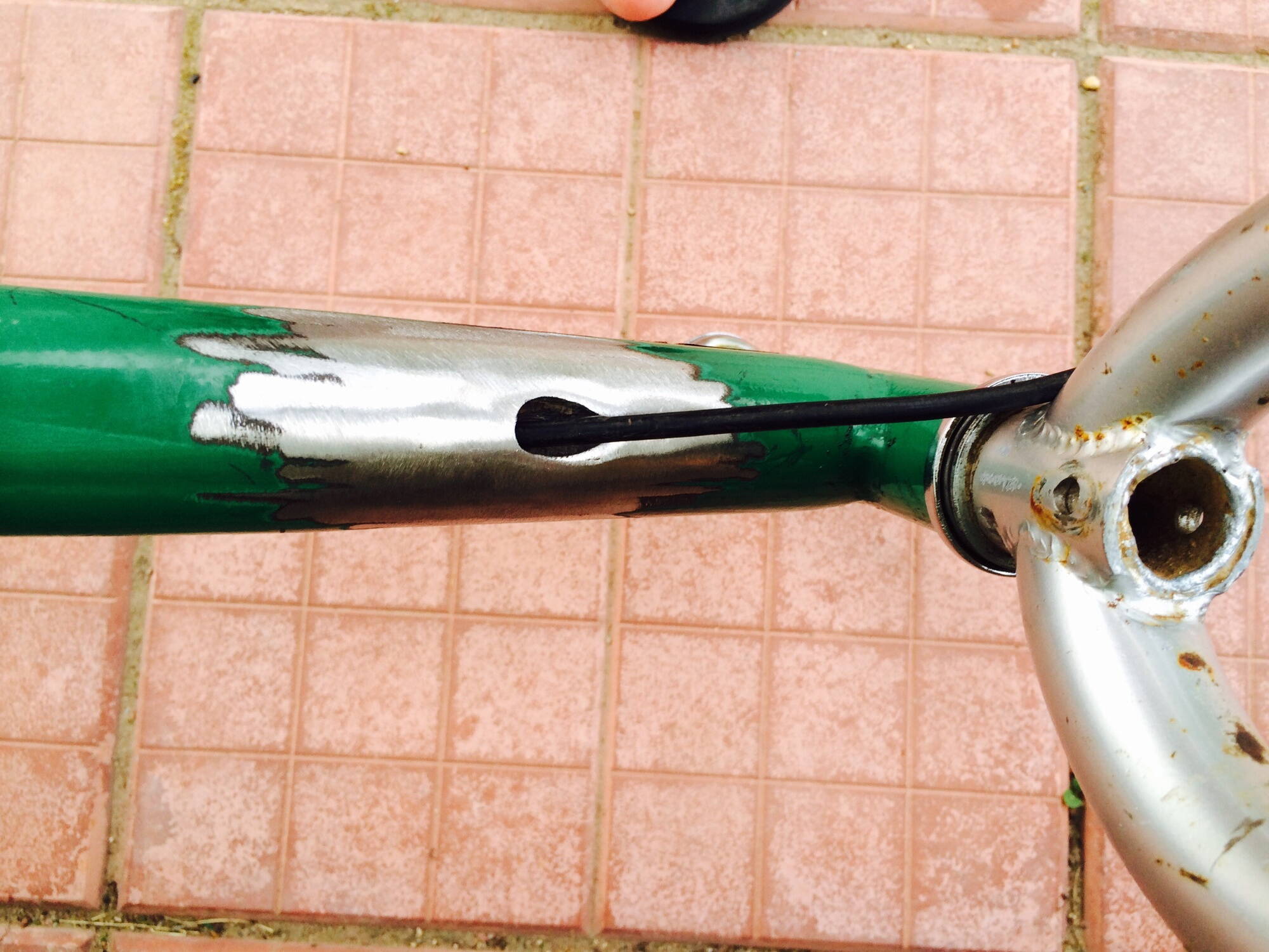 Такие входы для тросиков/магистралей буду делать в районе буквы "а" на наклейке, выходы на равном расстоянии между узлом складывания и подседельной трубой, думаю это будет грамотное решение. Вопрос в том делать это прямо с боку трубы или сместить ниже или вообще сделать одно отверстие на вход и одно на выход снизу трубы... надо подумать