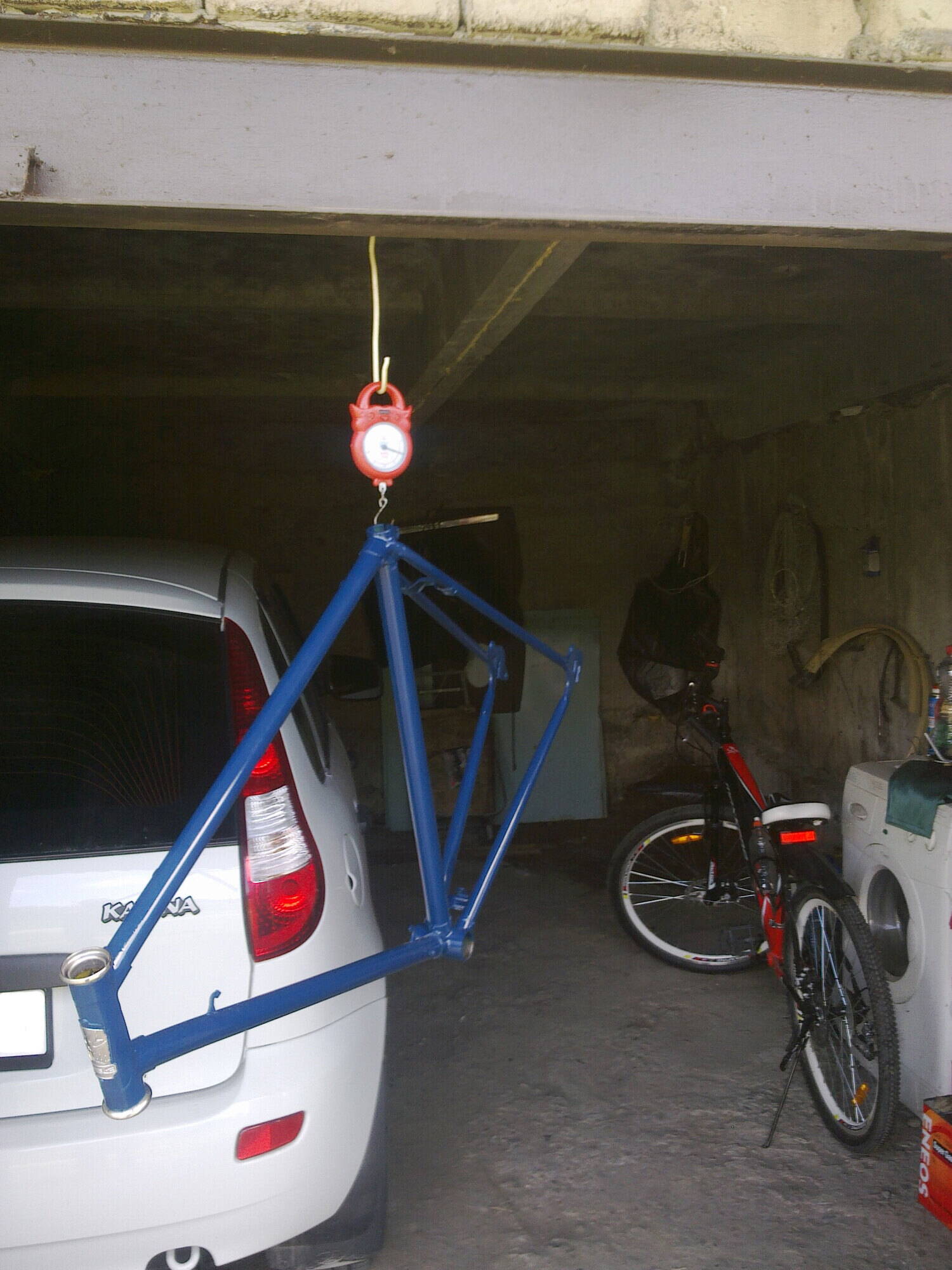 Как и просили взвесил голую раму (с чашками на рулевой).Взвешивал тоже безменом :facepalm: больше нет ни чего, показал ~3кг.Калибровал безмен двумя блинами от гантелей :D. Да кстати если заметили покрасили раму :oops:
