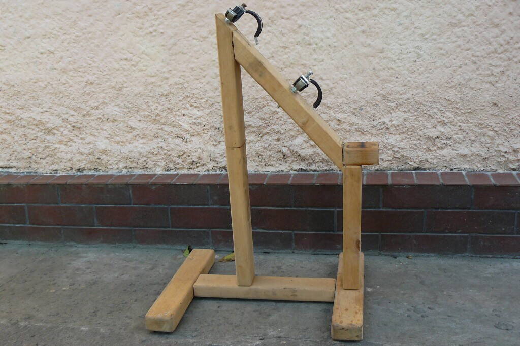 Якось наткнувся на цю статтю і вирішив викласти фотки стійки яку я зробив з дерева.Вийшла міцна в якості кріплення велосипеда вкористав хомути для кріплення пластикових труб