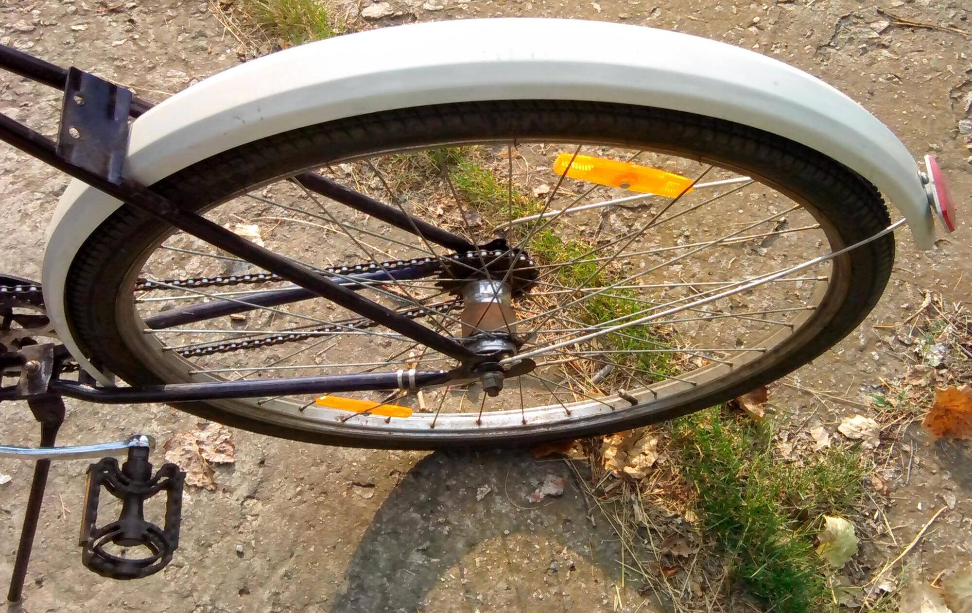 В силу неизвестных причин, велосипедные запчасти в нашем посёлке в понедельник не продают. Во вторник-воскресенье пожалуйста, а в понедельник закрыто. Как раз был понедельник. Дороти не сильно хотела ехать, недавно прошел дождь, лужи... куда-то 11 километров переть непонятно зачем... Первые километры велосипедица отчаянно скрипела рулём, дребезжала катафотом и показывала полный упадок сил. Но потом втянулась. Скрип и дребезжание волшебным образом пропали и к магазину мы подлетели бодрым галопом на фантастической скорости 25,5 км/ч, лихо перескакивая колдобины (их там немеряно).