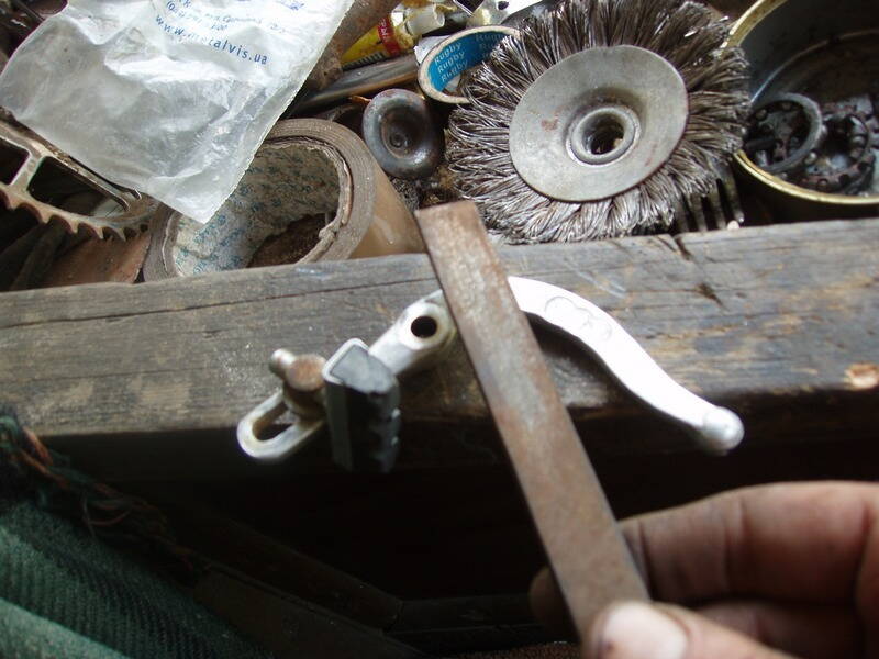 ВАЖНО! Передние части осей при развальцовке НЕЛЬЗЯ упирать в металлические предметы. Иначе конец оси неизбежно расклепается, и на него невозможно будет натянуть рычаг! А если рычаг получится пропихать через расклёпаный конец, на раброчей части он будет болтаться. Я упираю оськи в дубовую паркетину.