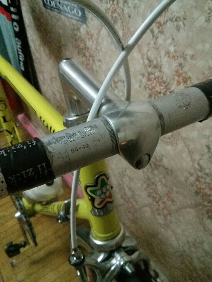 Солянка з компонентів: втулки, манетки Campagnolo, переклюки Suntor Cyclone, підседіл 3T 27.2, рульова Dura Ace, обода NISI, трубки Continental Giro, система SR Royal, різьба в кареточному британка, кермо Cinelli Del Mondo.