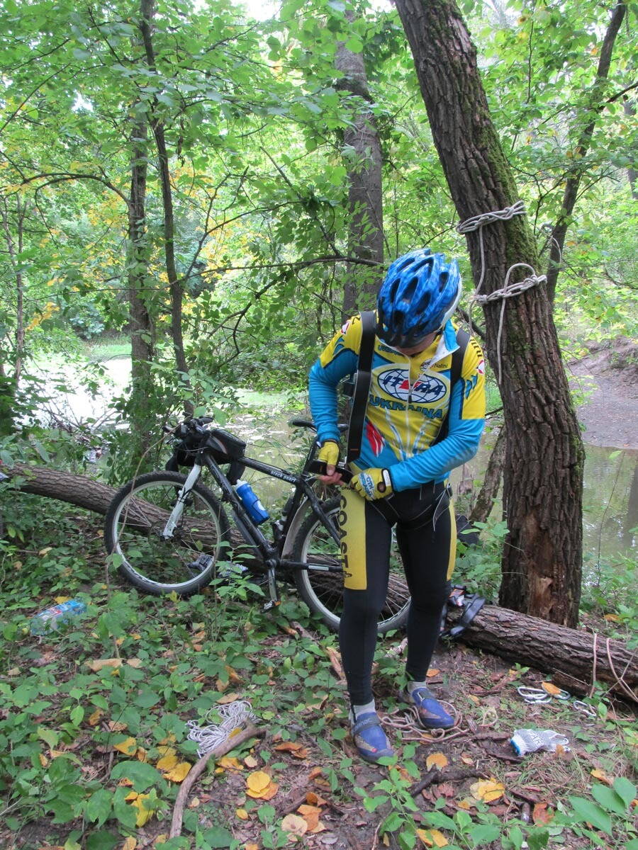 Переправляем велосипеды, сами переправляемся на тот берег...