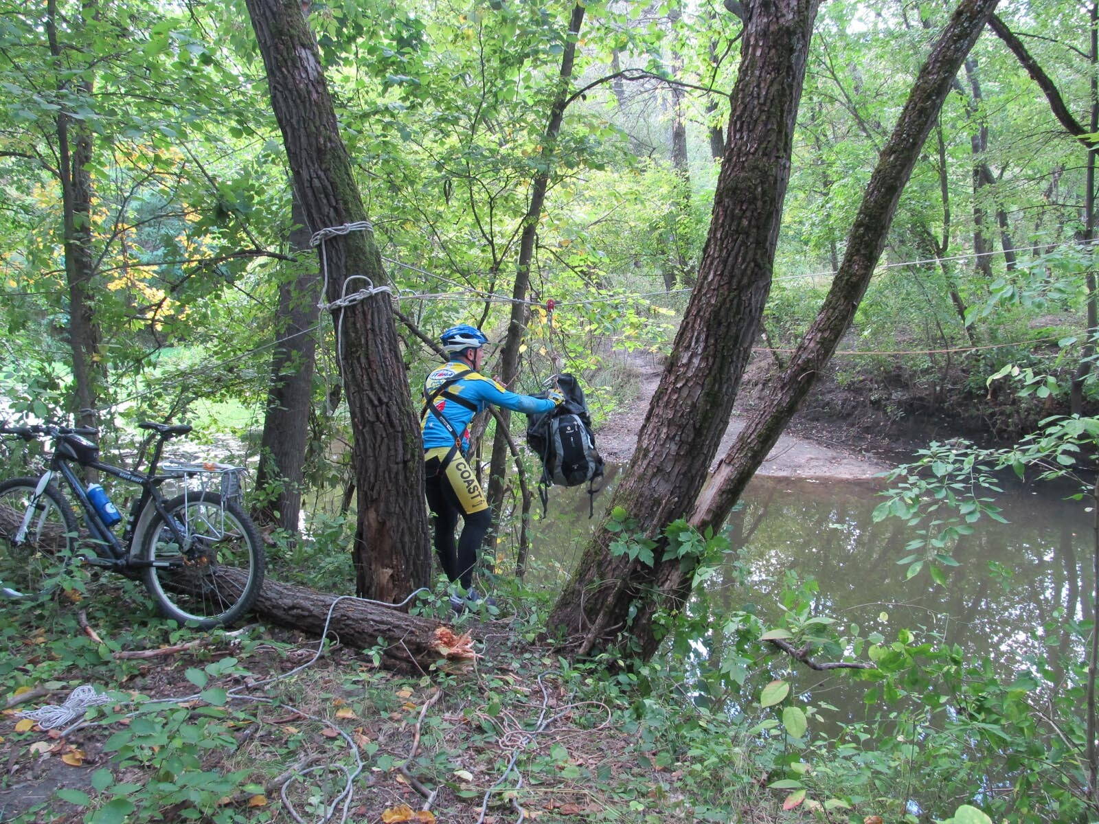 И так состоялся спортивно познавательный велопоход выходного дня (ПВД) с наведением навесной переправы и преодоление реки Лопань в брод на велосипедах.