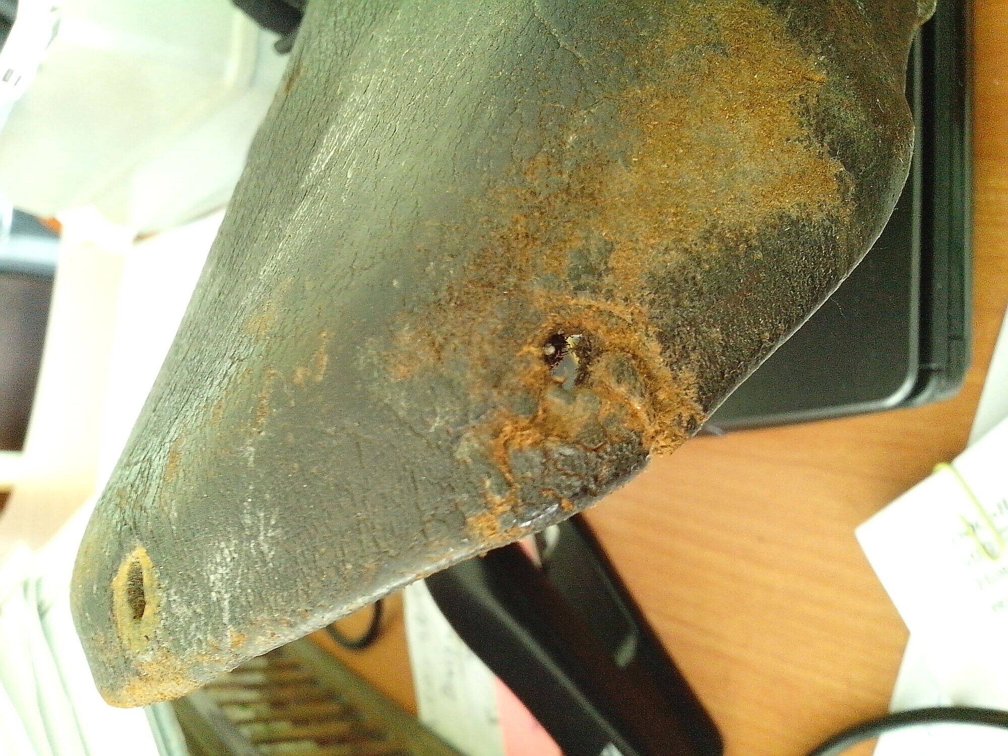 Седло отшкурено, отмочено, натянуто на колодку и сушится.